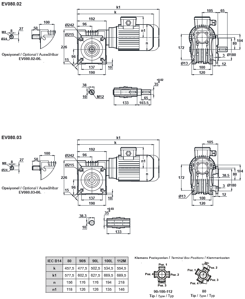Червячный мотор-редуктор EV080 (EN080)
