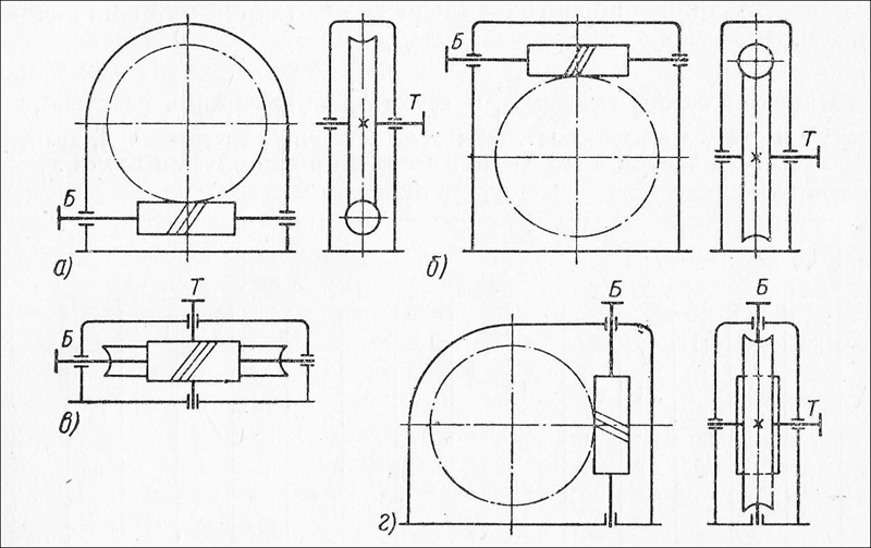 Г) Редуктор с боковым расположением червяка (ось червяка расположена вертикально)