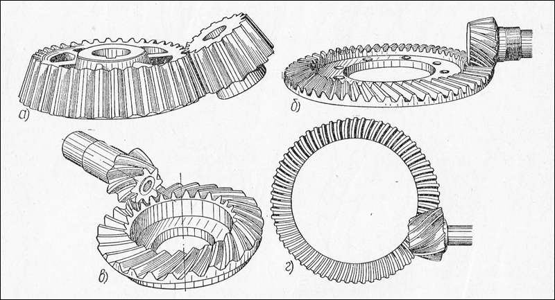 в) Коническая зубчатая передача с криволинейным зубом